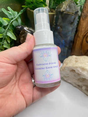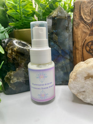 30ml Happiness & Aura Cleansing Sacred Ritual Room Spray | Happy | Witchcraft | Wiccan | Pagan | Mist | Crystal Infused | Herbs