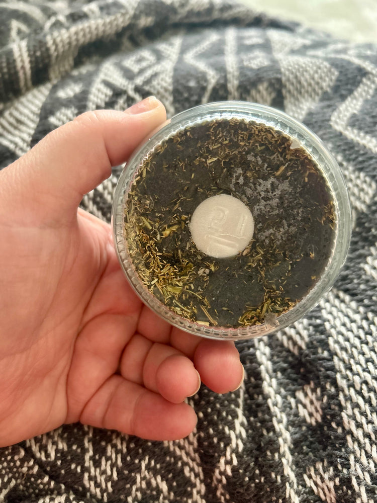 Hand-poured with Beeswax, herbs sealed inside the wax, crystal charged, and made with the intention to cleanse your space and send negativity away.