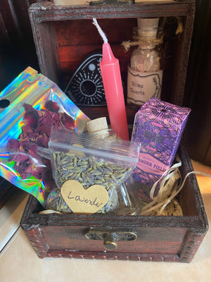 Pamper yourself with a little self love, all the materials needed for a self-love spell bottle. In this chest you will receive: