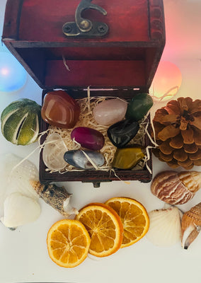 This chest contains crystal Tumble stones. You will receive 8 crystals, size, shape and colour will vary.